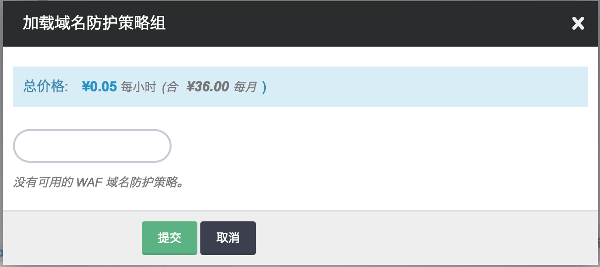 在第三步中给监听器配置 WAF 域名防护策略时,因为还没有创建 WAF 域名策略,所以弹出的列表是空的。 现在点击监听器下方的 WAF 域名防护策略 “加载” 按钮,可以列出来已创建的域名防护策略。