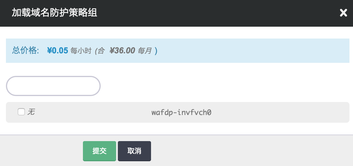 点击 WAF 域名防护策略组 “加载” 可以弹出 WAF 域名防护策略的选择页面: