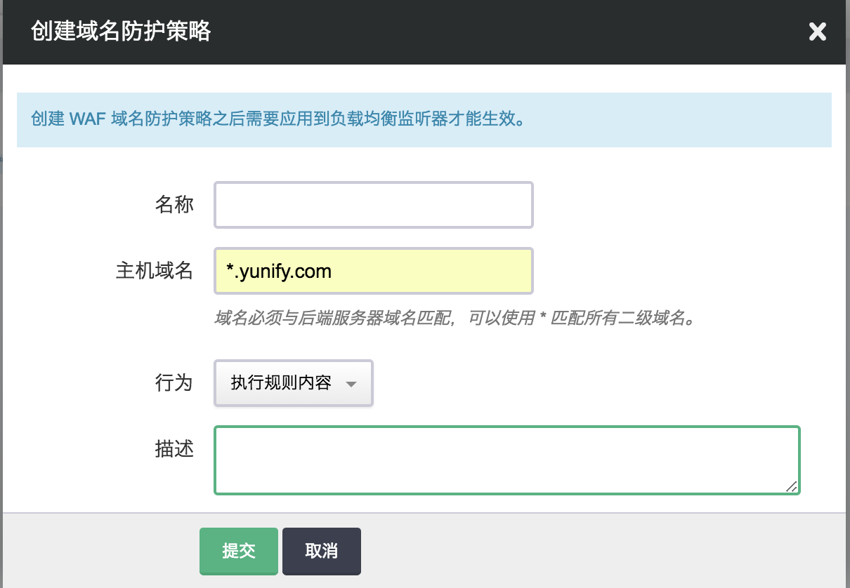 开启 WAF 功能之后,需要给监听器绑定域名防护策略,步骤同上。