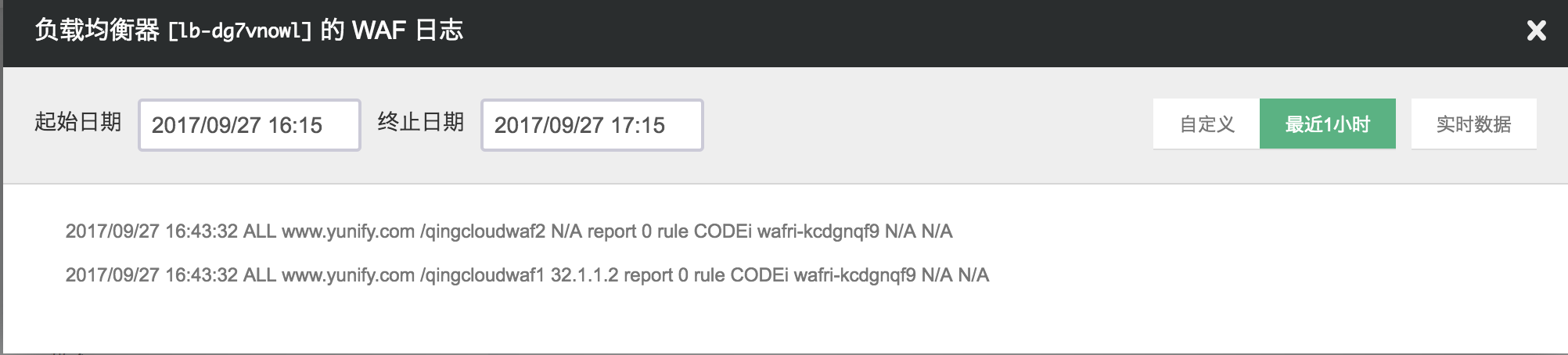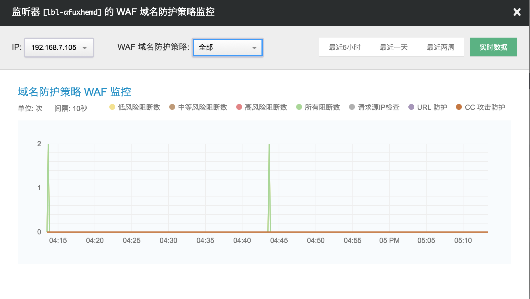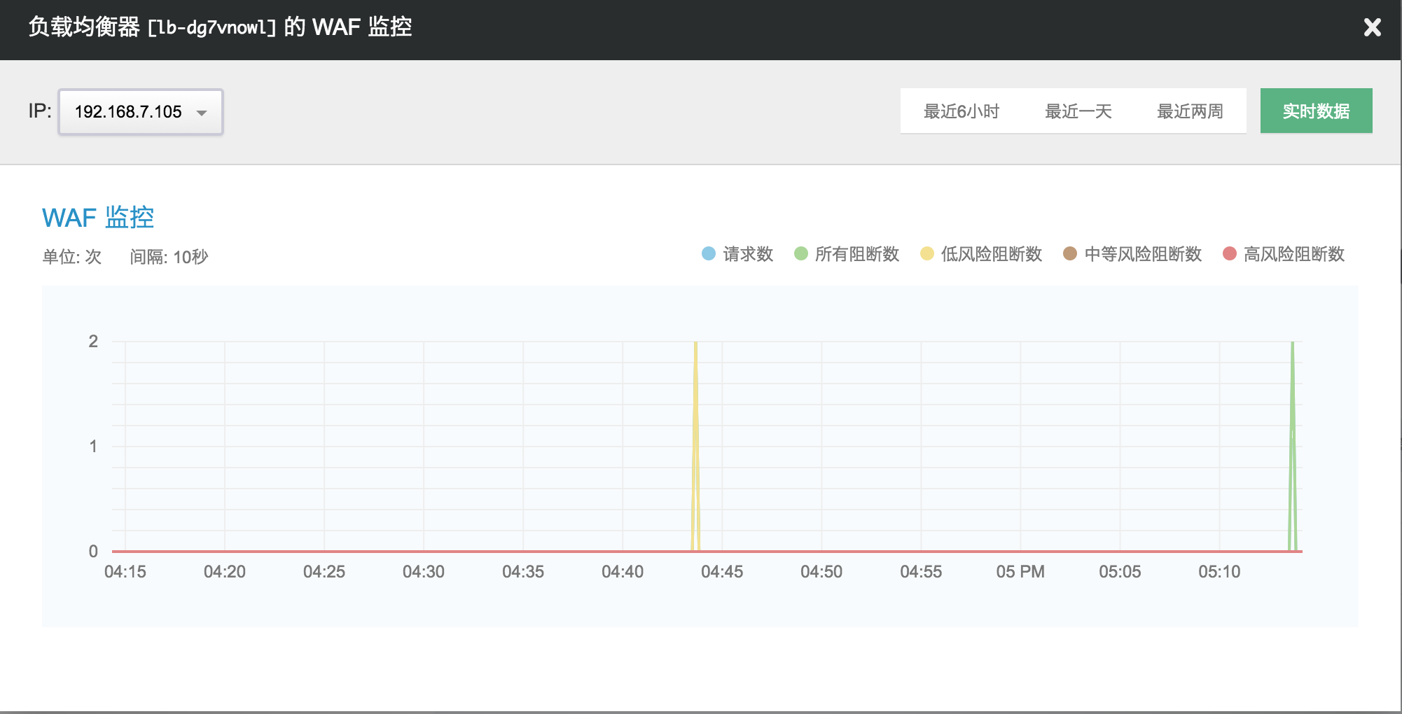 也可以查看整个负载均衡的监控情况,点击 “WAF监控” 选择 “监控”: