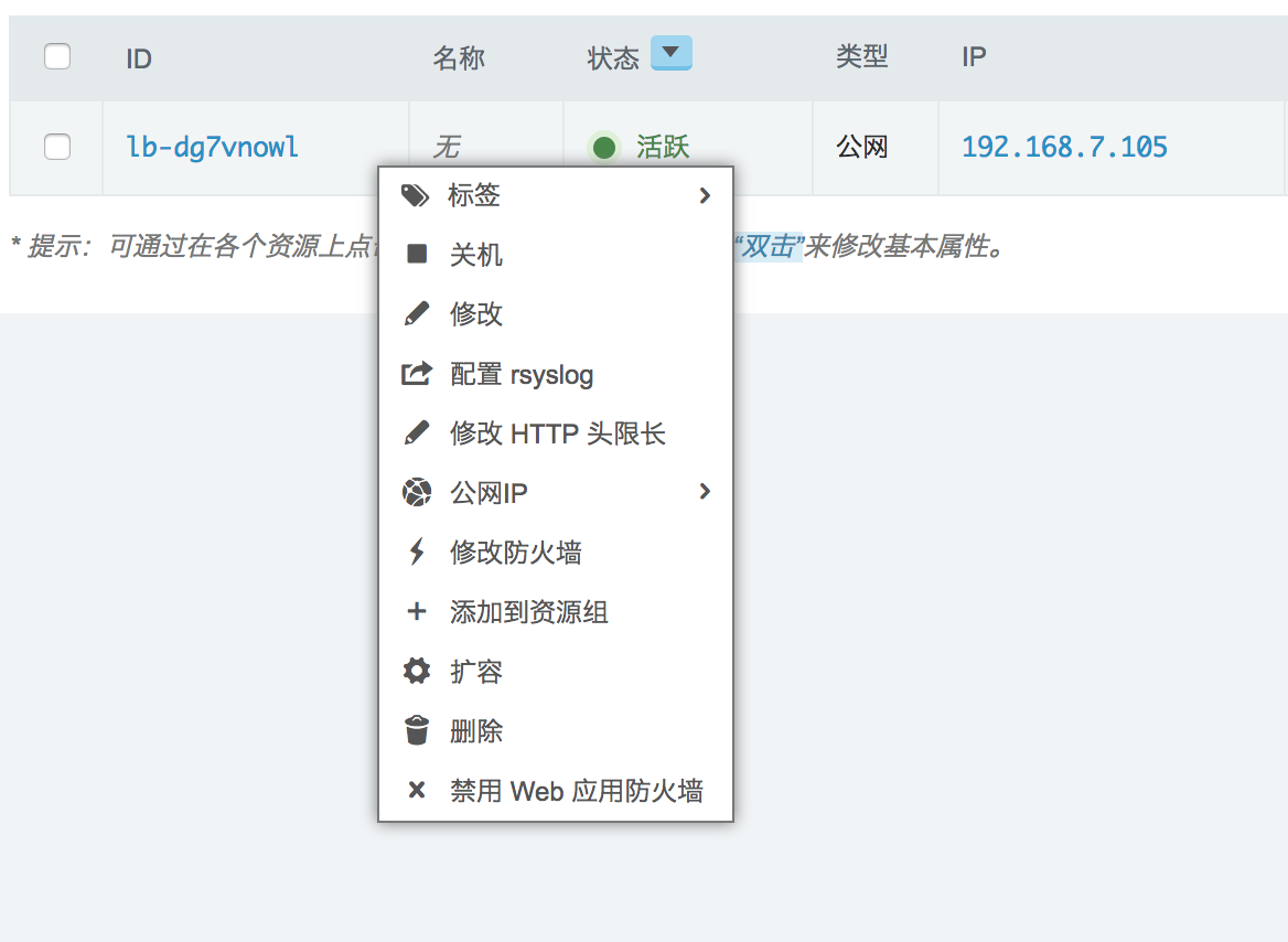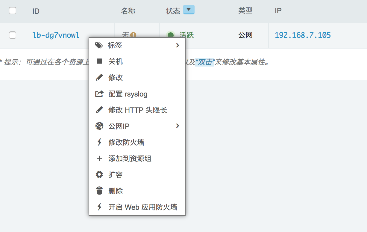 给已经创建好的负载均衡器开启 WAF 功能时,右键点击负载均衡器,可以看到 “开启 Web 应用防火墙” 的选项: